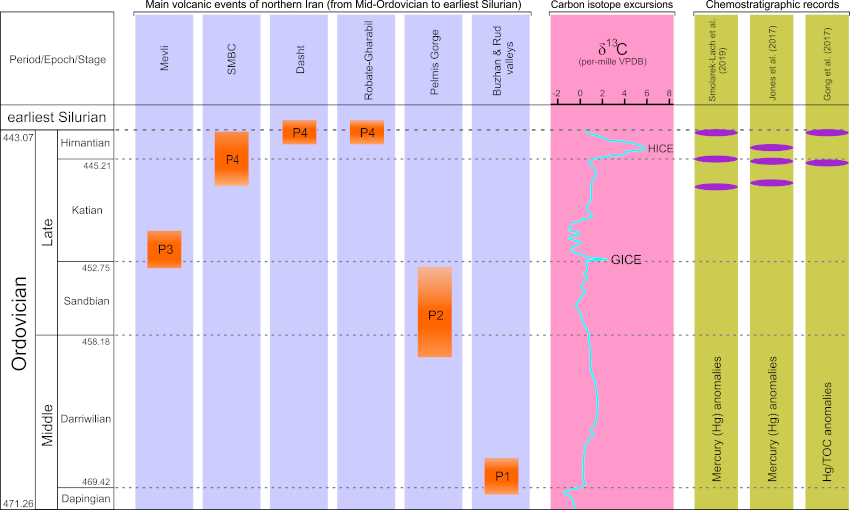 Derakhshi, M., Ernst, R.E., Kamo, S.L. (2022). Ordovician-Silurian volcanism in northern Iran: Implications for a new Large Igneous Province (LIP) and a robust candidate for the Late Ordovician mass extinction. Gondwana Research. 107, 256-280. https://doi.org/10.1016/j.gr.2022.03.009